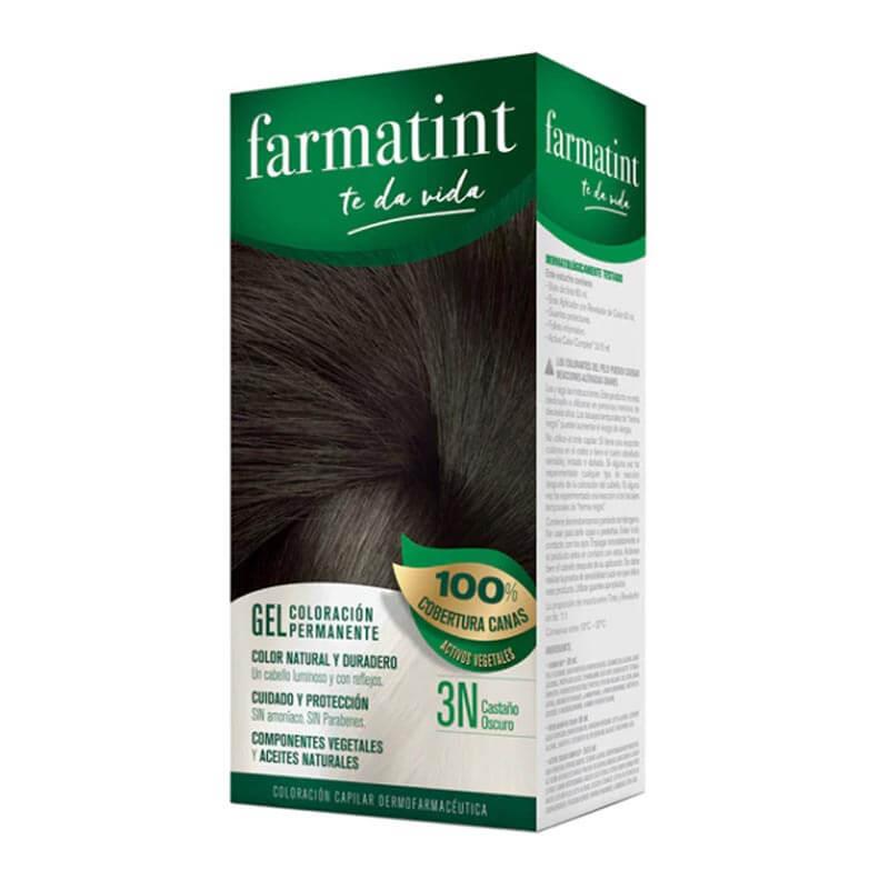 Farmatint, con su nueva fórmula en gel, proporciona una coloración permanente sin amoníaco ni parabenes, a base de componentes naturales y aceites vegetales, aportando a tu cabello la hidratación que necesita y un brillo intenso y duradero. Si deseas cubrir el 100% de las canas mientras proteges, hidratas y nutres el cabello durante la coloración, Farmatint es el producto ideal, ya que ejerce una acción reestructurante de las fibras capilares. Elaborado con aloe vera, tradicionalmente utilizado por sus propiedades calmantes, refrescantes y protectoras; queratina que repara el cabello devolviéndole su brillo natural; aceite de argán y de macadamia para nutrir el cabello; y un complejo a base de hidrolizado de seda que acondiciona el cabello proporcionando una magnífica sensación de suavidad. Su nueva fórmula, con una mejorada tolerancia dérmica, no contiene amoníaco, parabenes, resorcinol ni PPD, respeta el cuero cabelludo y cuida tu cabello.